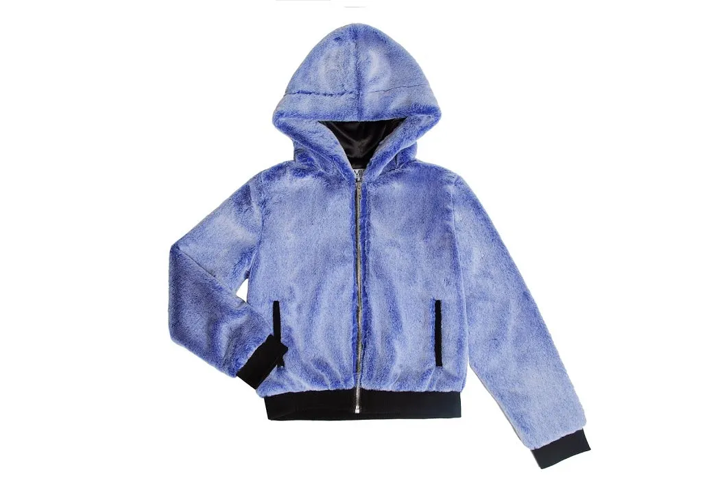 Faux fur jacket with pockets. Zipper front.