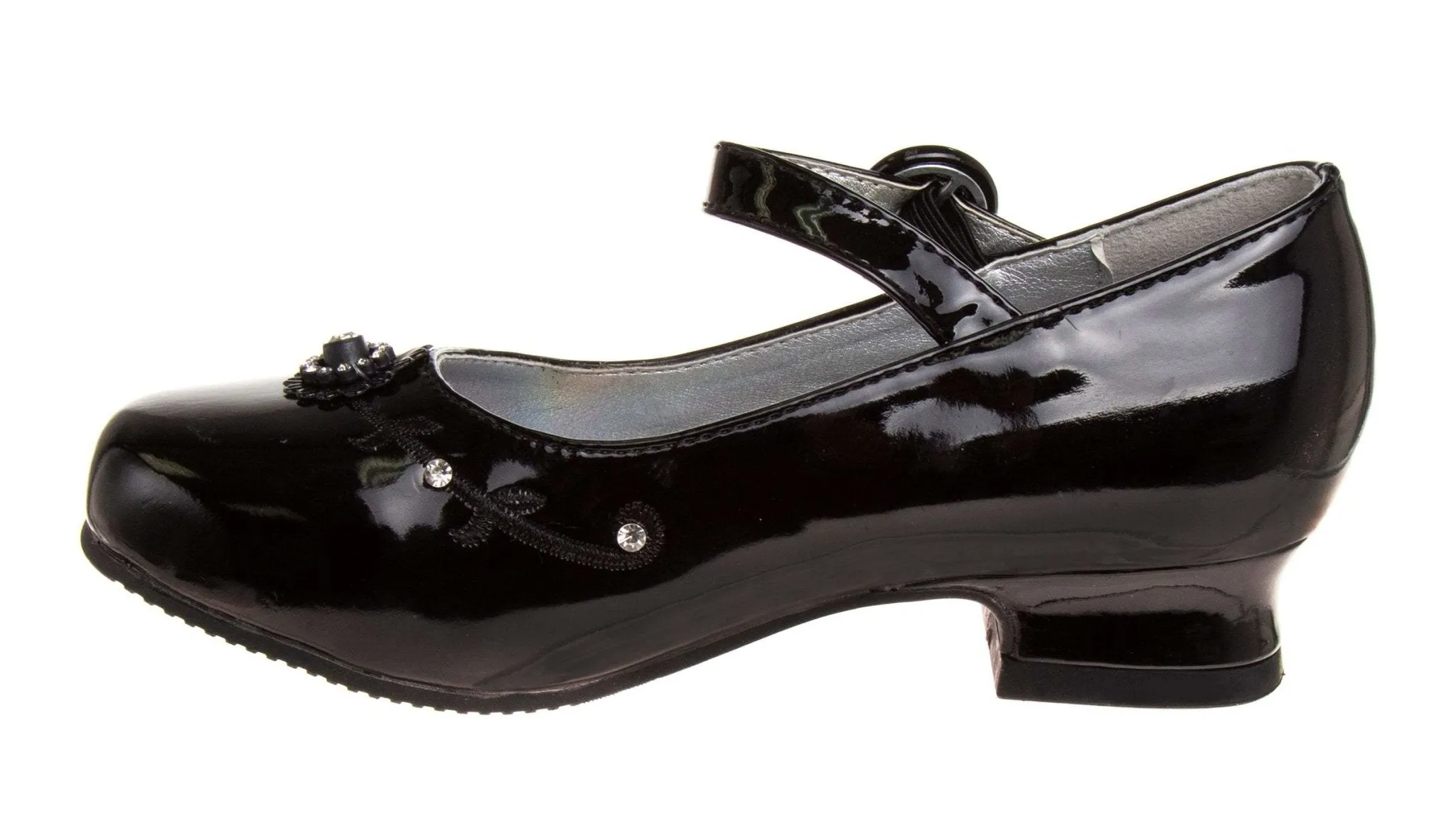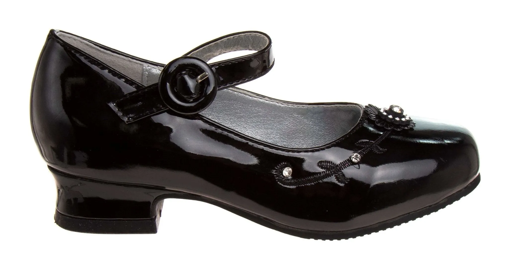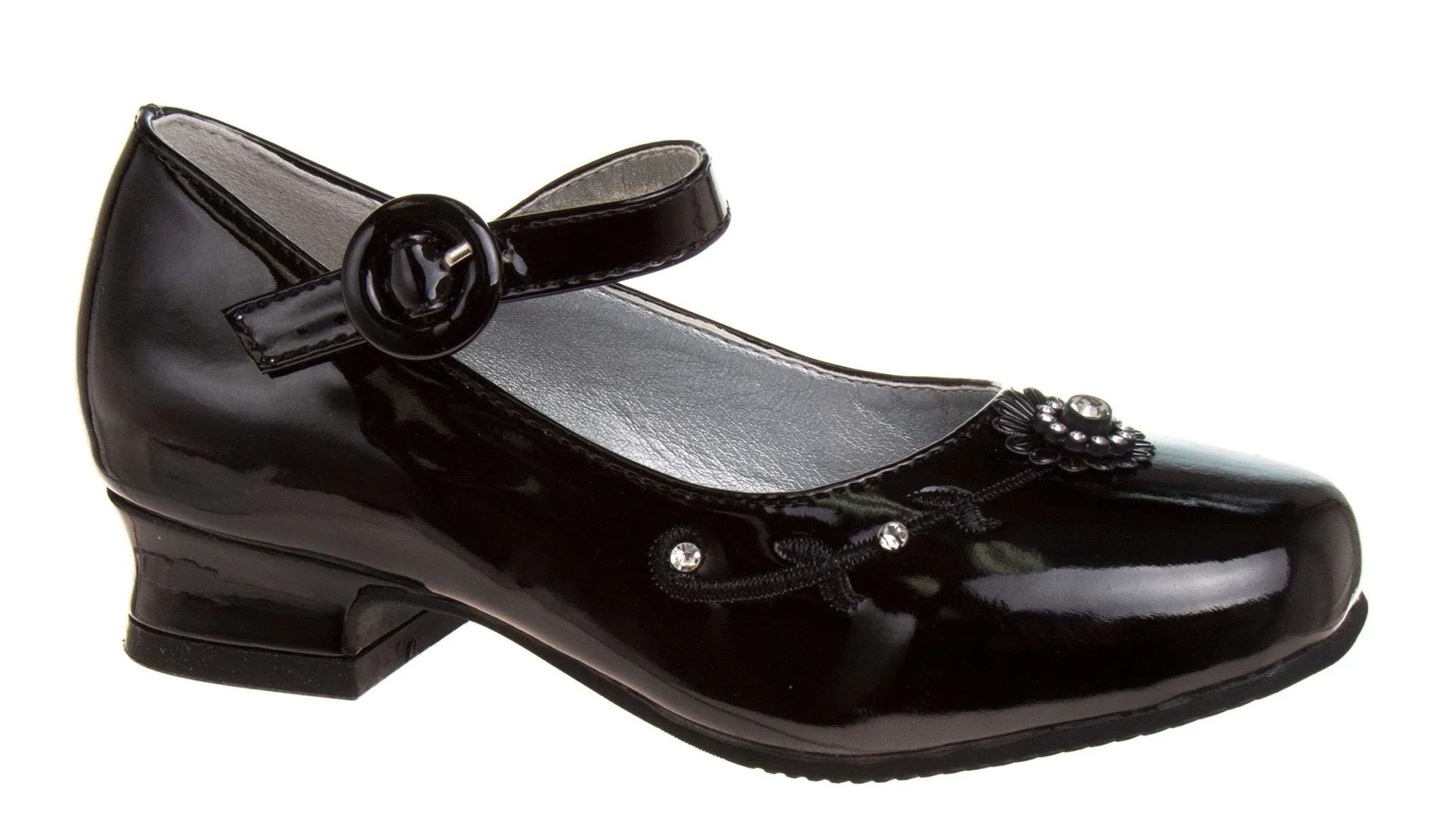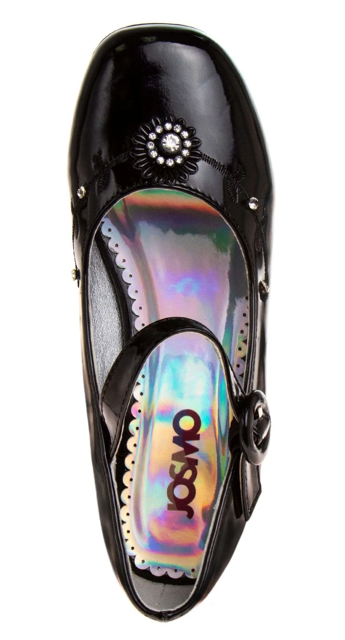 The Josmo Mary Jane dress shoes is an adorable option for dress occasions with its polished upper and floral accent. Buckle closure. Keep your little lady dancing through those special occasions with these sweet shoes that keep her toes comfy and her ensemble sweet right down to her feet.