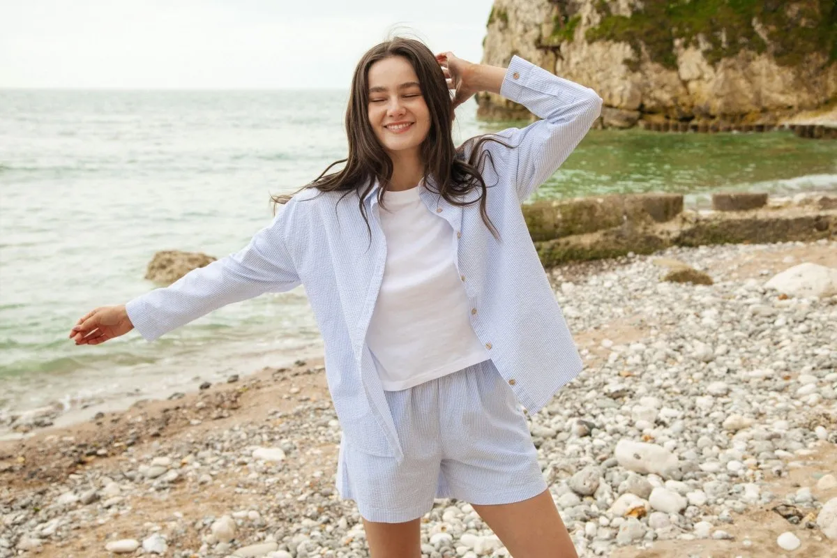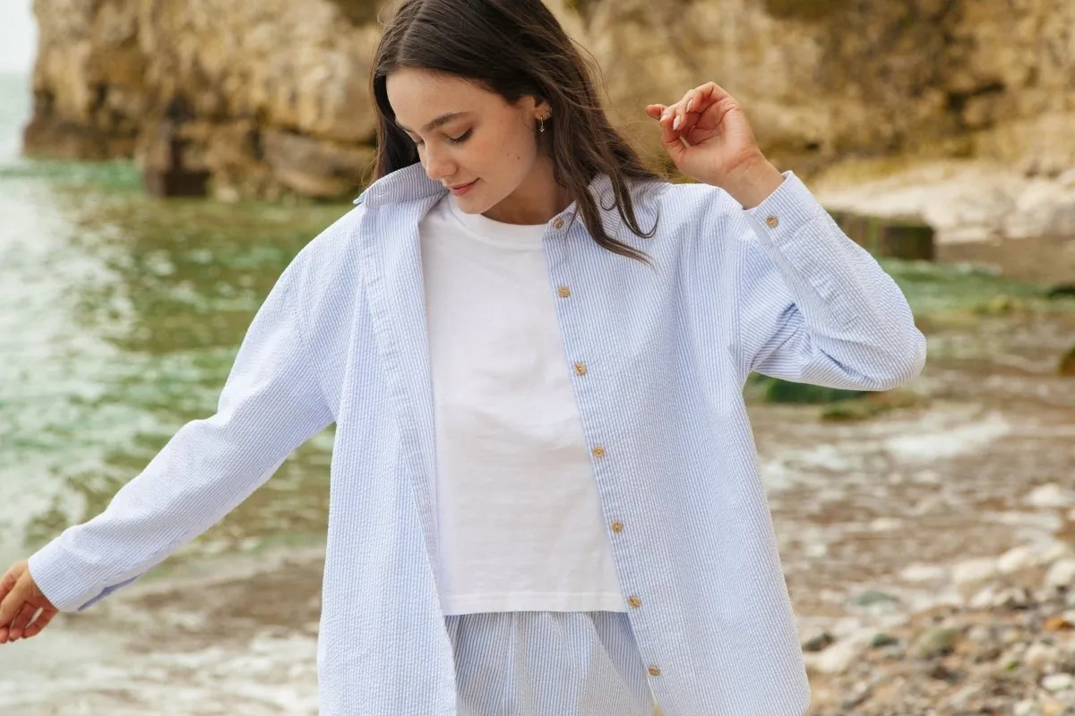The Isola Striped Shirt is a stylish choice for the warmer seasons. Made from organic cotton with a textured finish, it's the perfect laid-back layer to throw on over swimwear or a smarter look for evenings out. It's breathable and lightweight to stay cool on sunnier days. Pair with the Isola Striped shorts to complete a timeless look.
